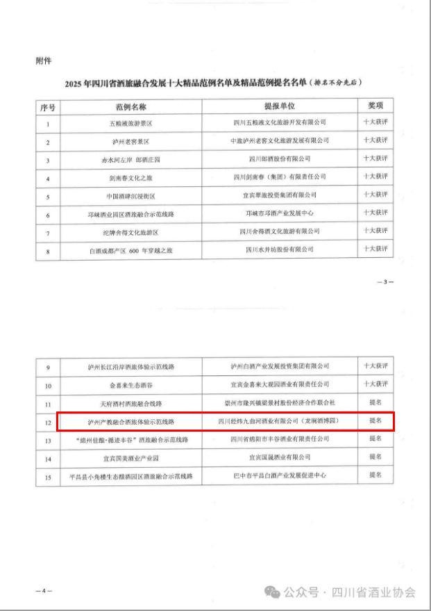 四川經(jīng)緯九曲河酒業(yè)有限公司榮獲2025年四川省酒旅融合發(fā)展十大精品范例