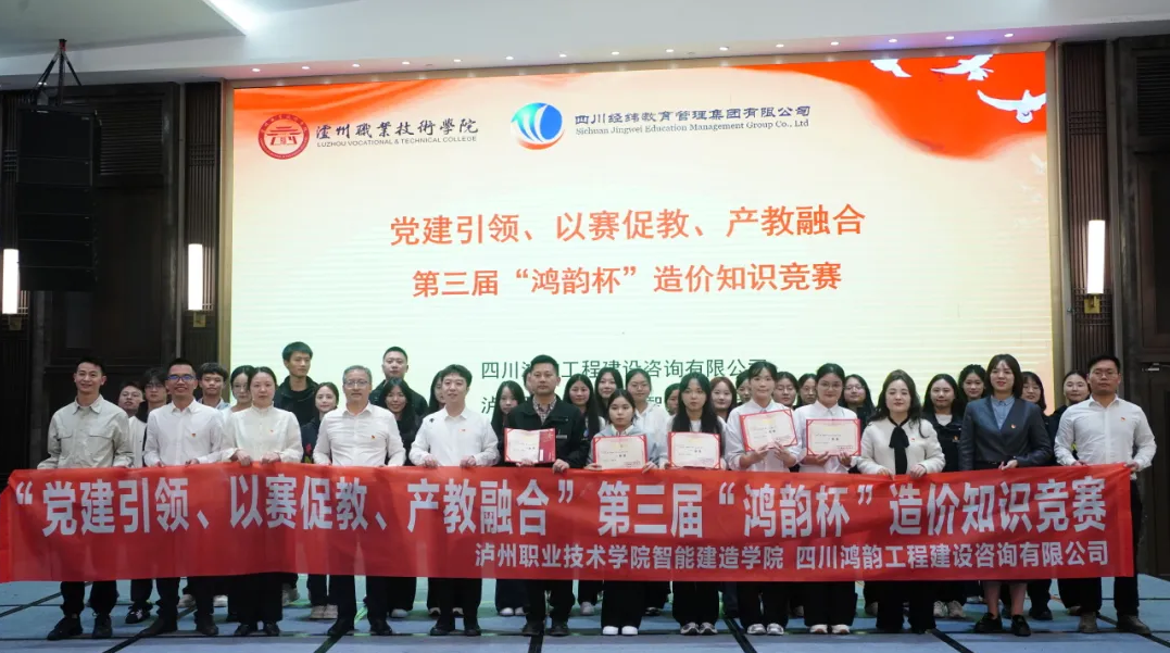 10月30日,由四川鴻韻工程建設(shè)咨詢有限公司主辦,瀘州職業(yè)技術(shù)學(xué)院智能建造學(xué)院黨總支、經(jīng)緯集團(tuán)黨委第三黨支部聯(lián)合協(xié)辦的第三屆“鴻韻杯”造價(jià)知識(shí)競賽圓滿落幕。本次活動(dòng)以“黨建引領(lǐng)、以賽促教、產(chǎn)教融合”為主題,匯聚了鴻韻公司技術(shù)骨干與智能建造學(xué)院工程造價(jià)專業(yè)學(xué)生共30人,組成6支參賽隊(duì)伍同場競技。